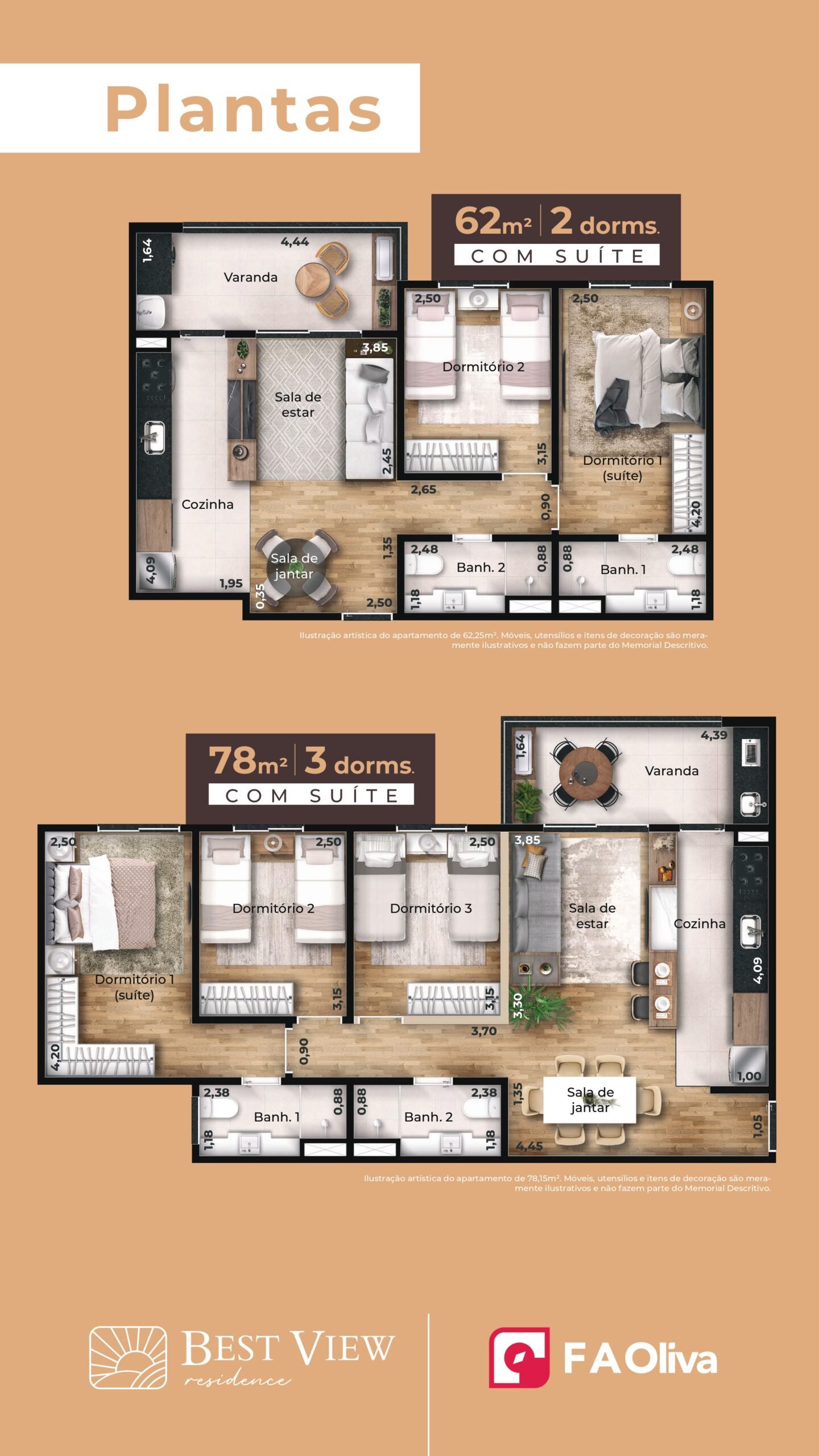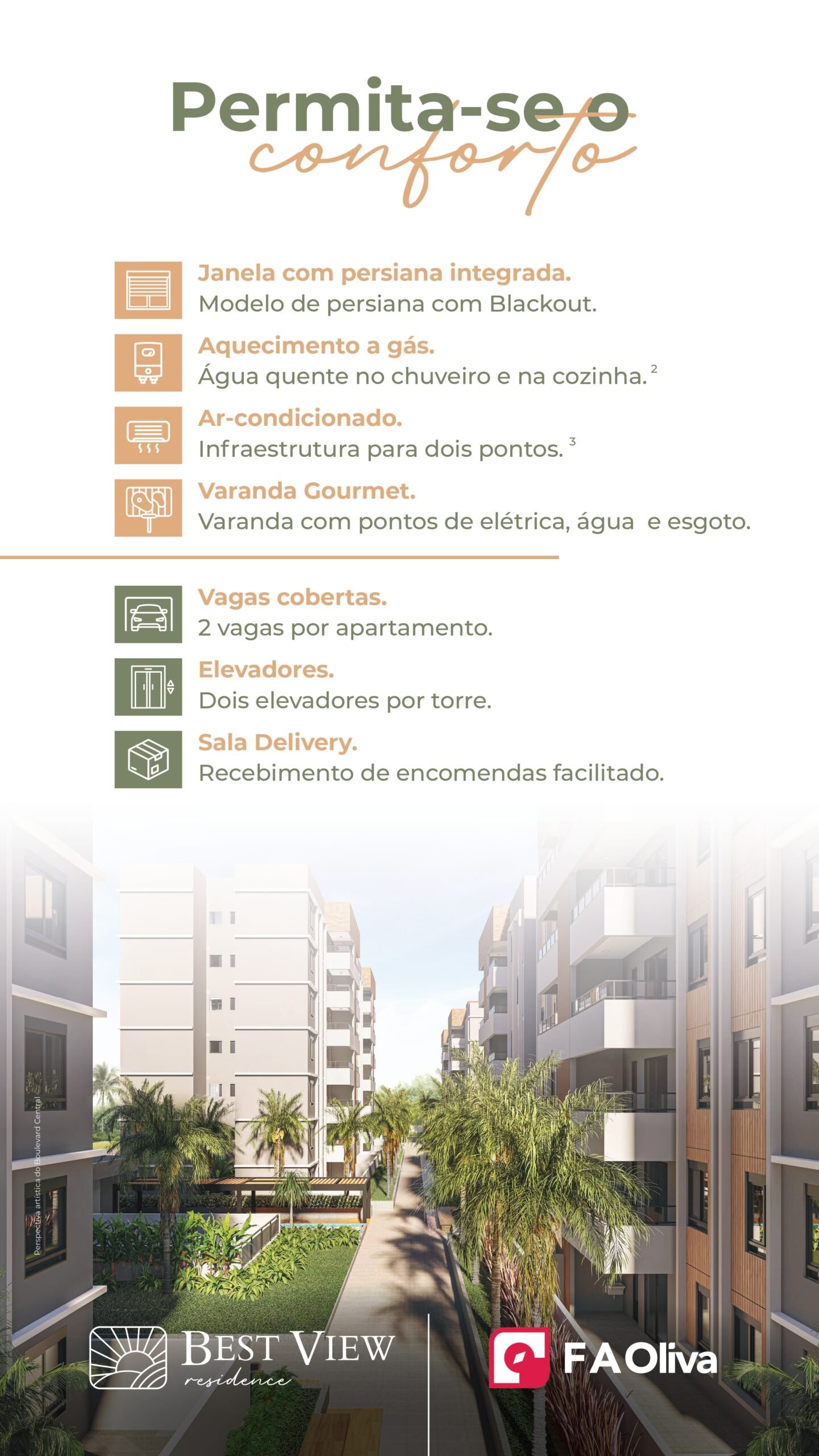 Vagas de garagem:2 vagas cobertas em subsolo por apartamento¹